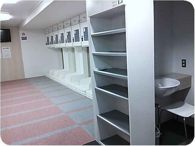 荷物を入れる鍵付棚が見えますね。この部屋自体にも