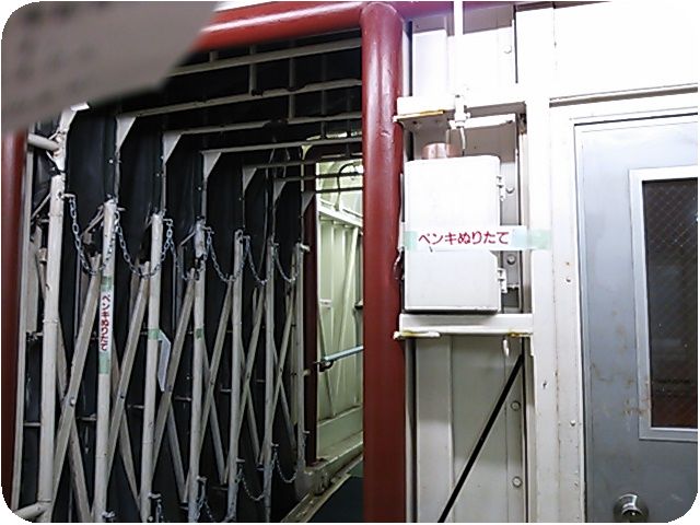 船への入口。やたら「ペンキぬりたて」の張り紙。