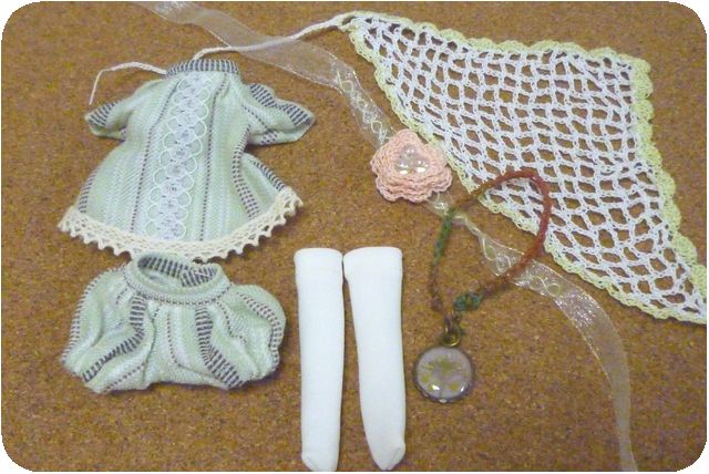 また襟巻などにも使えるケープ…と、髪飾りのお花。
