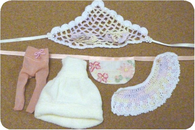 ワンピ・バブーシュカ・ケープ・エプロン・タイツのセットです。