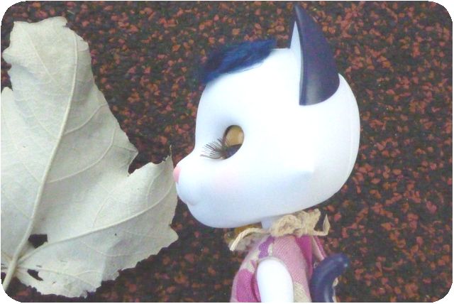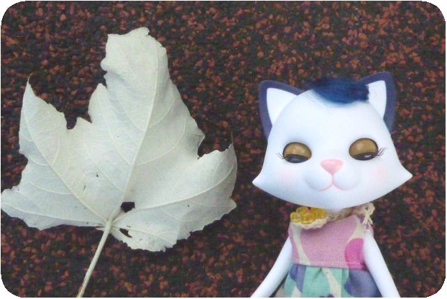 「見て見て、この葉っぱ、白くて私の顔に似てる!」