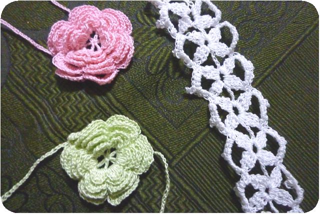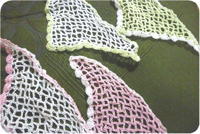 レース糸で、バブーシュカを編んでみました。