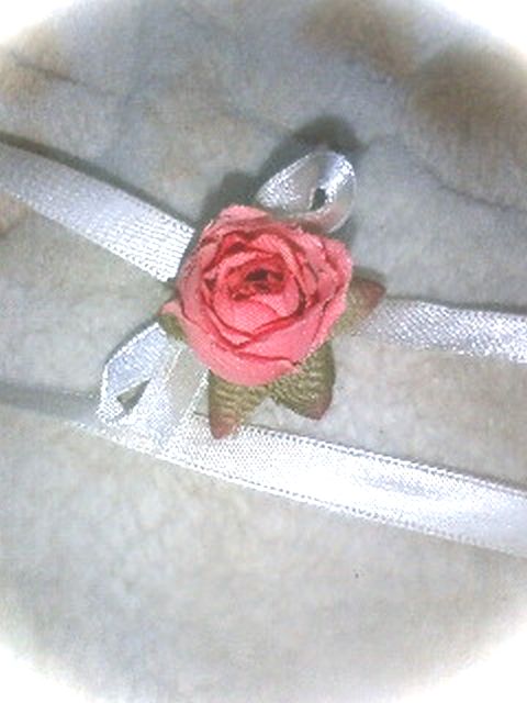 引き出物に可愛いお花が付いていたので、リボンにつけて…