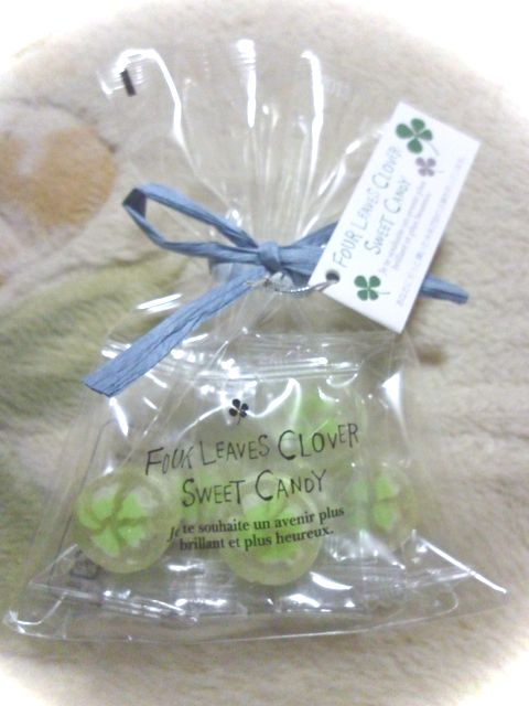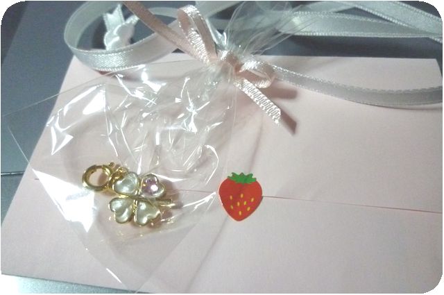 封筒にはそれぞれ小さなチャームが…。私のは四葉の形。