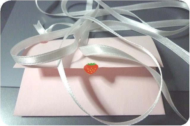 この封筒に付いてたリボン、綺麗なので今度お人形の服に使おう…(^^)。